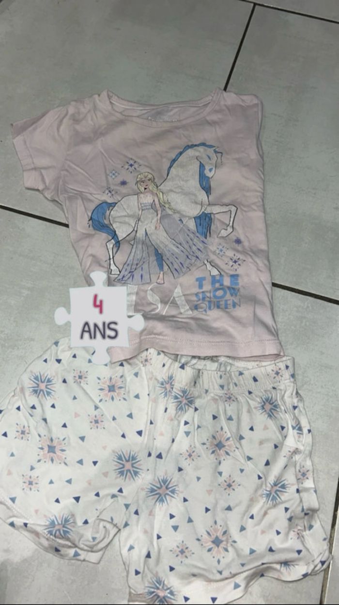 Très bon état 1 legging 4 jeans 2 pygamas 1 pull 1 short 1 ensemble de survêtement Plusieurs marque H&M, Calzedonia, Disney, Extenso, Sergent major, Okaidi