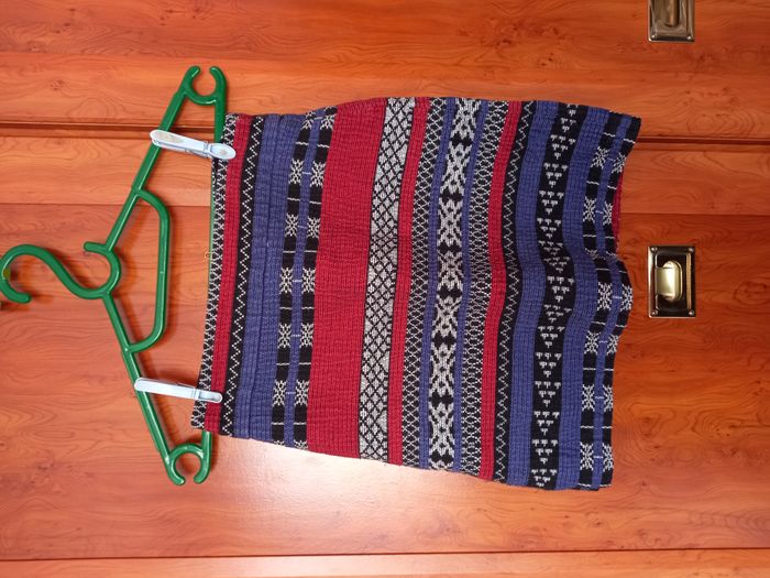 made in France 77 % coton 23 % polyester fermeture éclair dans le dos largeur taille 31,5 cm largeur en bas 43,5 cm hauteur 41 cm rouge, noir, blanc, bleu tirant sur le violet