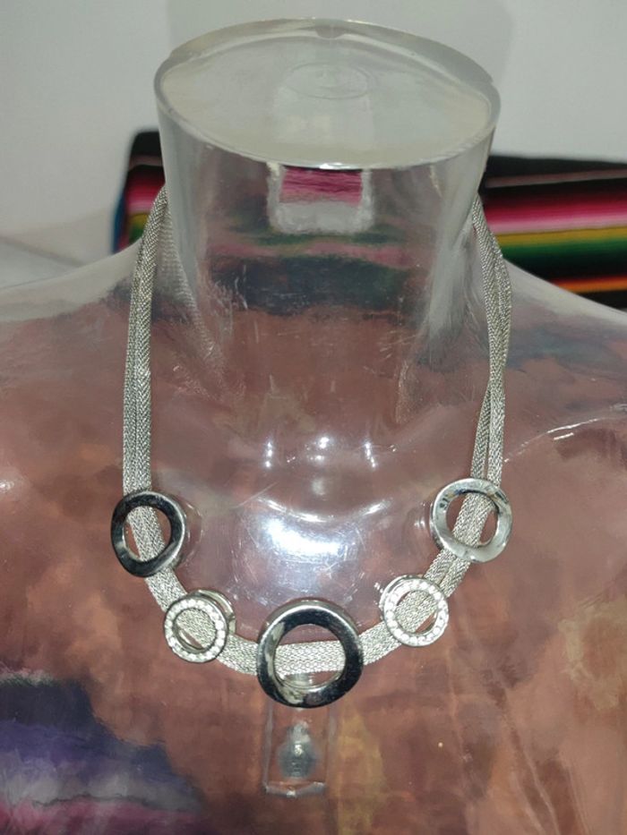 🌺 collier fantaisie métal argenté et strass - photo numéro 2