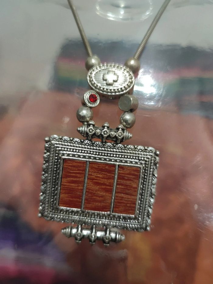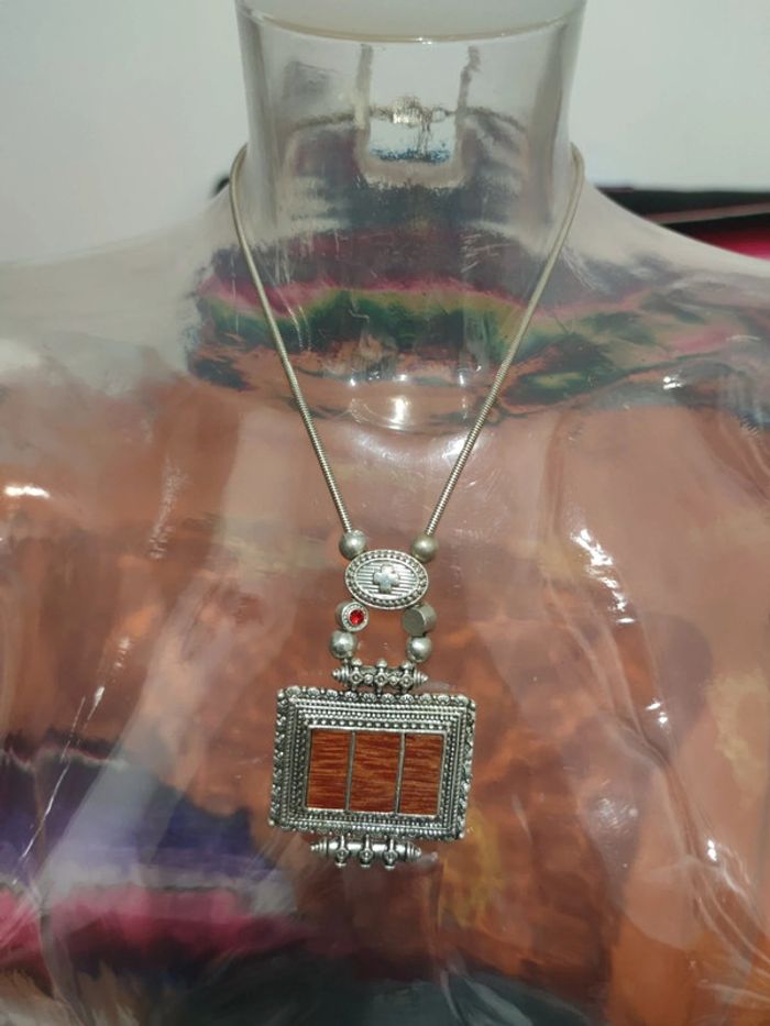 Collier fantaisie métal argenté et bois - photo numéro 1
