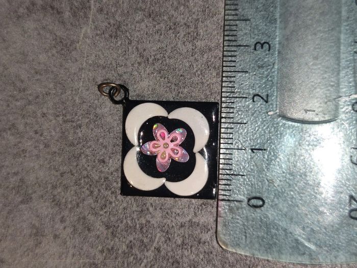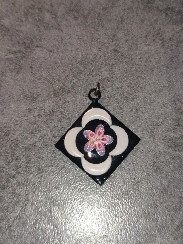 Pendentif fantaisie carré métal argenté noir blanc et rose - photo numéro 2