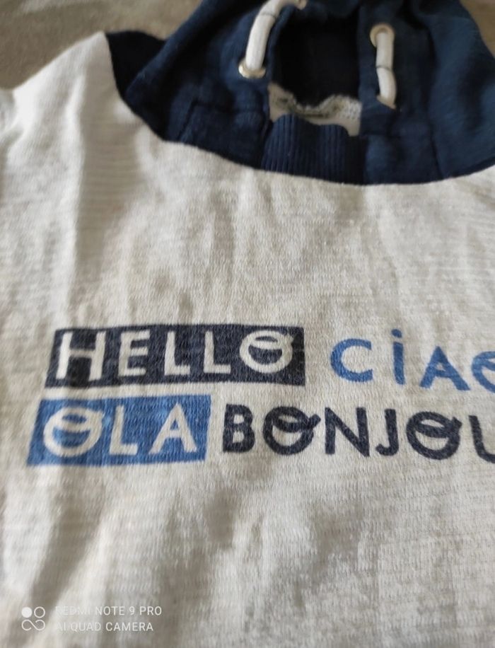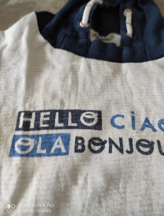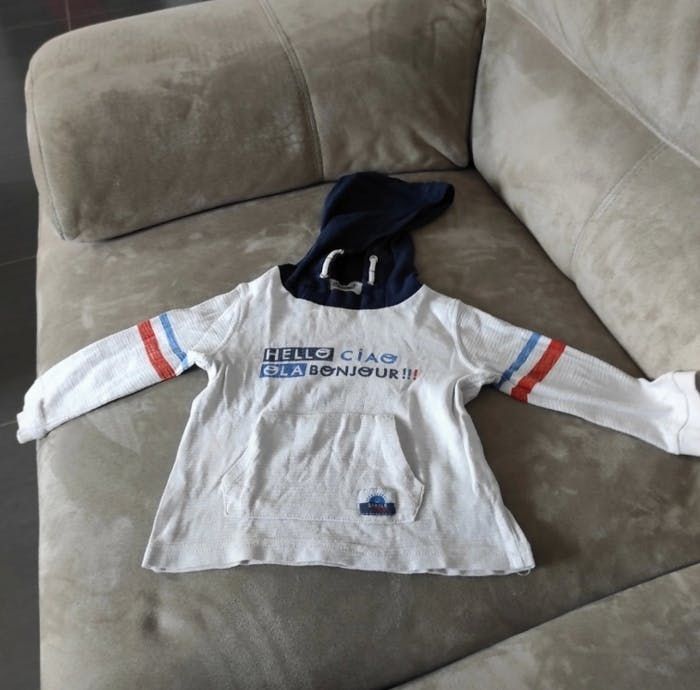 Tee shirt à capuche et à manches longues Légère trace en dessous du col (voir photos) Gémo