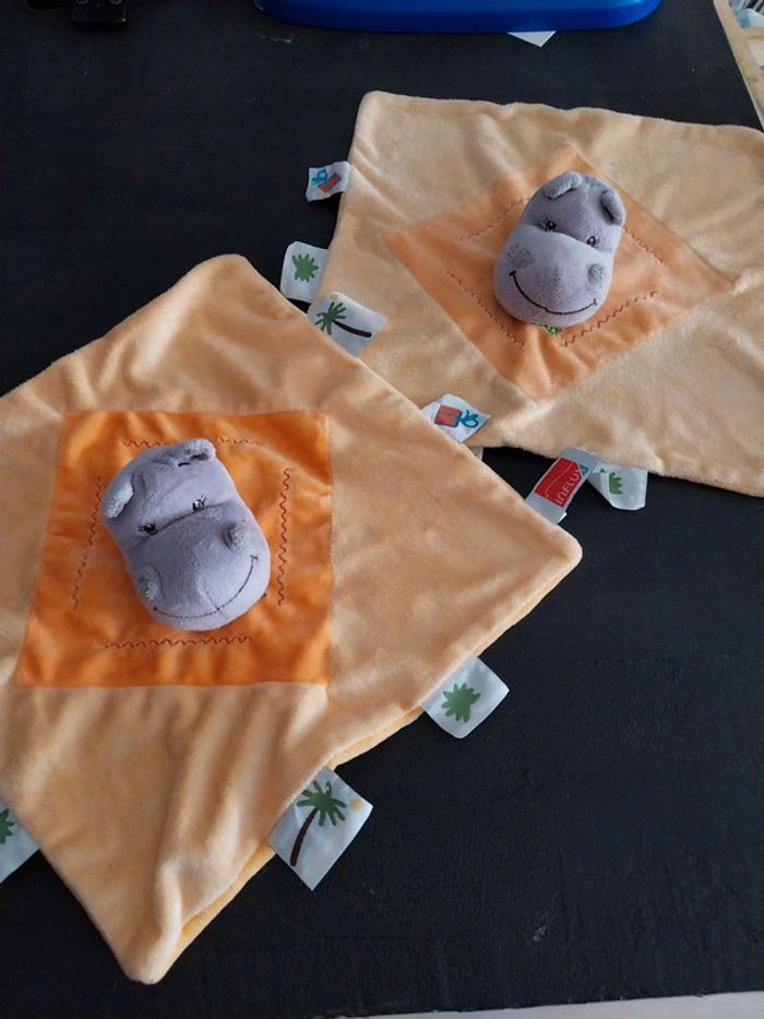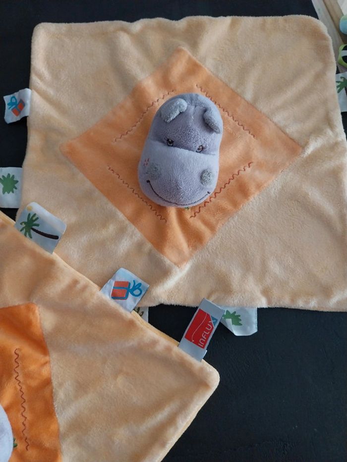 Lot de 2 doudous hippopotame influx Orange gris Étiquettes Un en très bon état Un comme neuf 7€ pièce ou 12€ le lot
