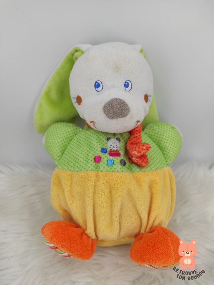 Doudou Lapin Vert Jaune Mots d'Enfants - photo numéro 1