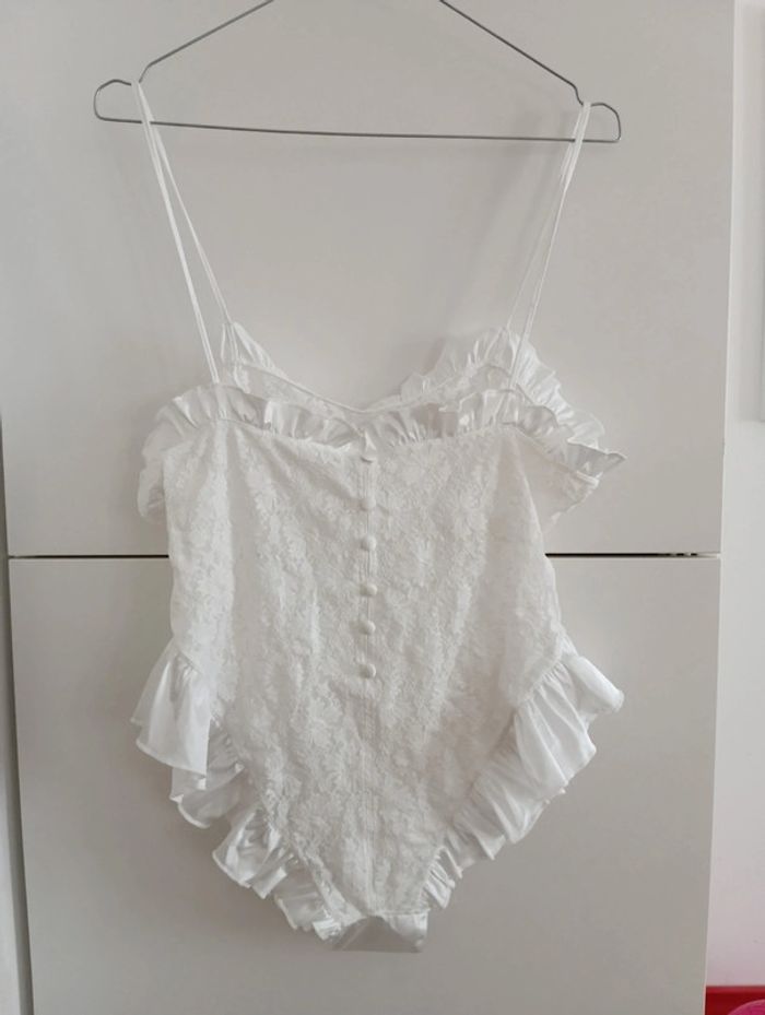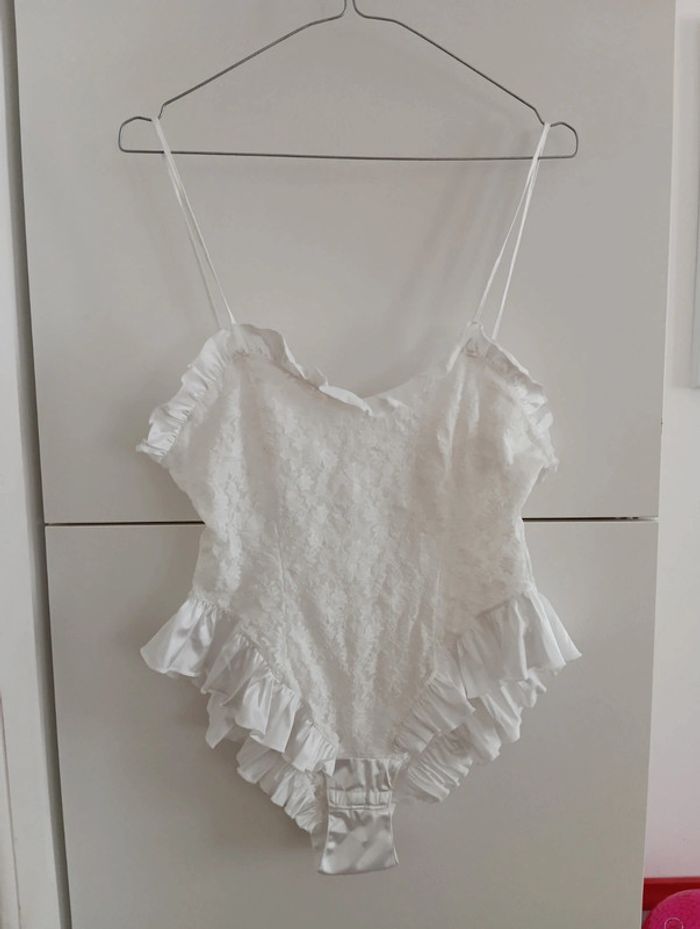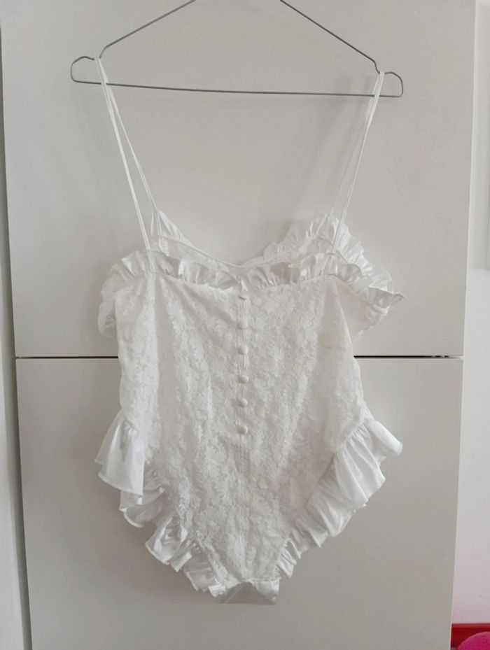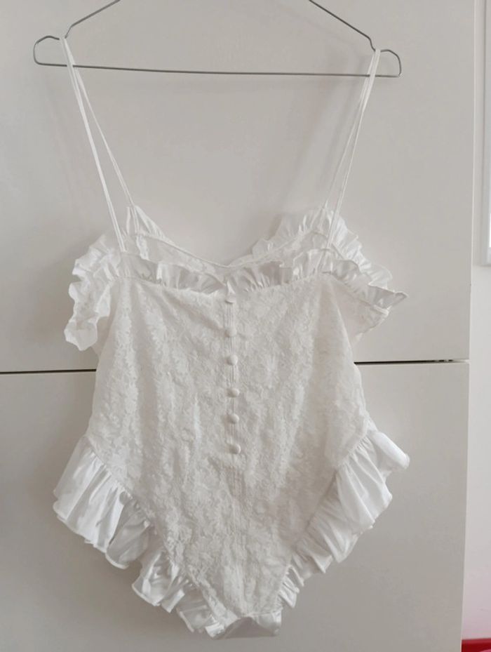 Body blanc dentelle et froufrous vintage taille 38 - photo numéro 8