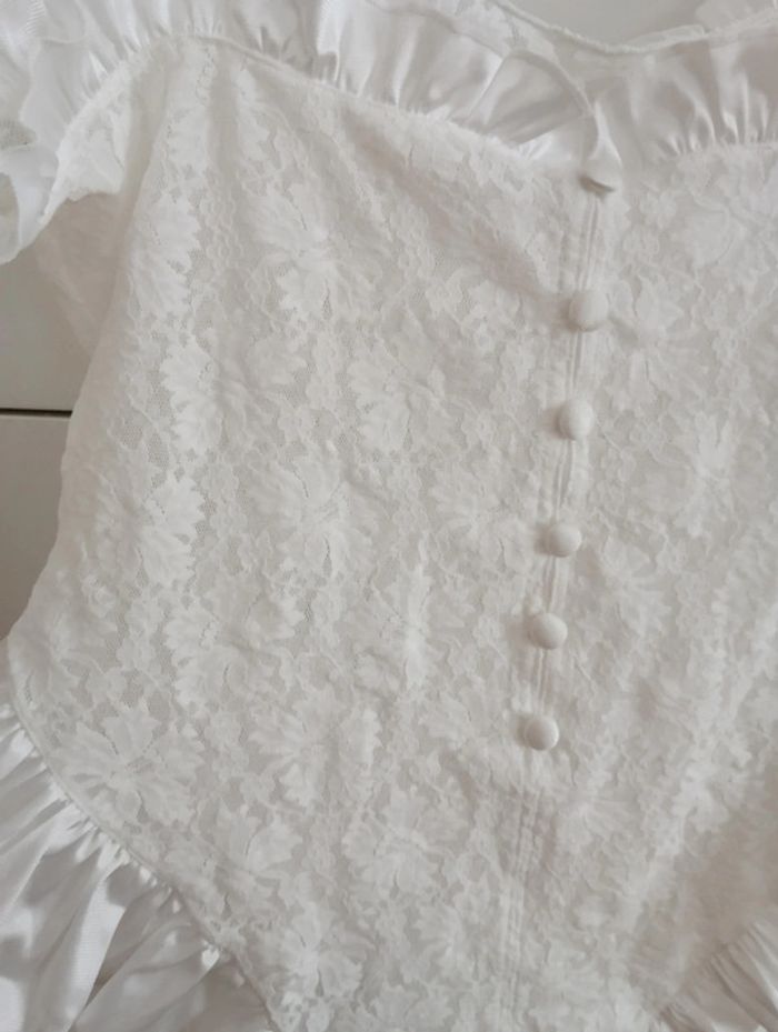Body blanc dentelle et froufrous vintage taille 38 - photo numéro 6