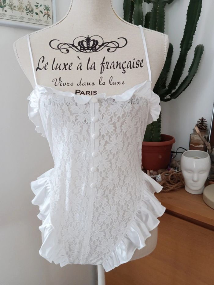 Body blanc dentelle et froufrous vintage taille 38 - photo numéro 1