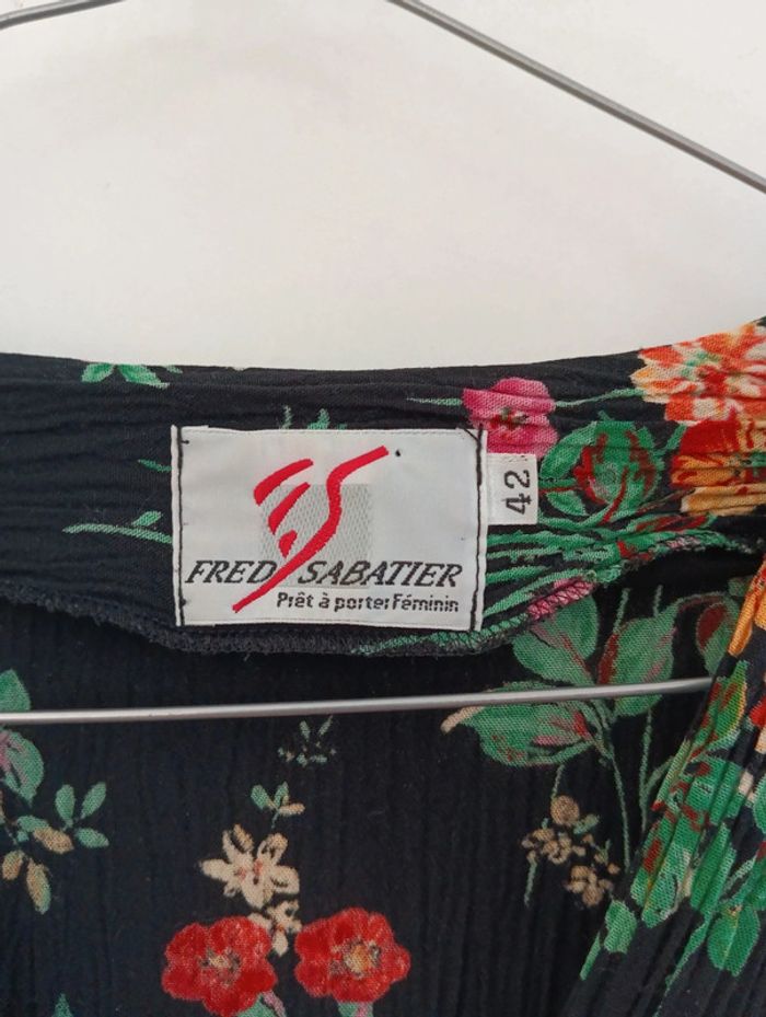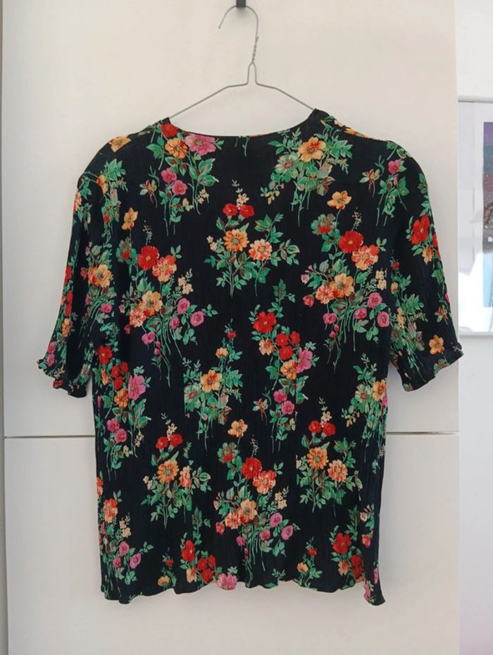 Chemise noire fleurs multicolores effet froissé taille 40 - photo numéro 8