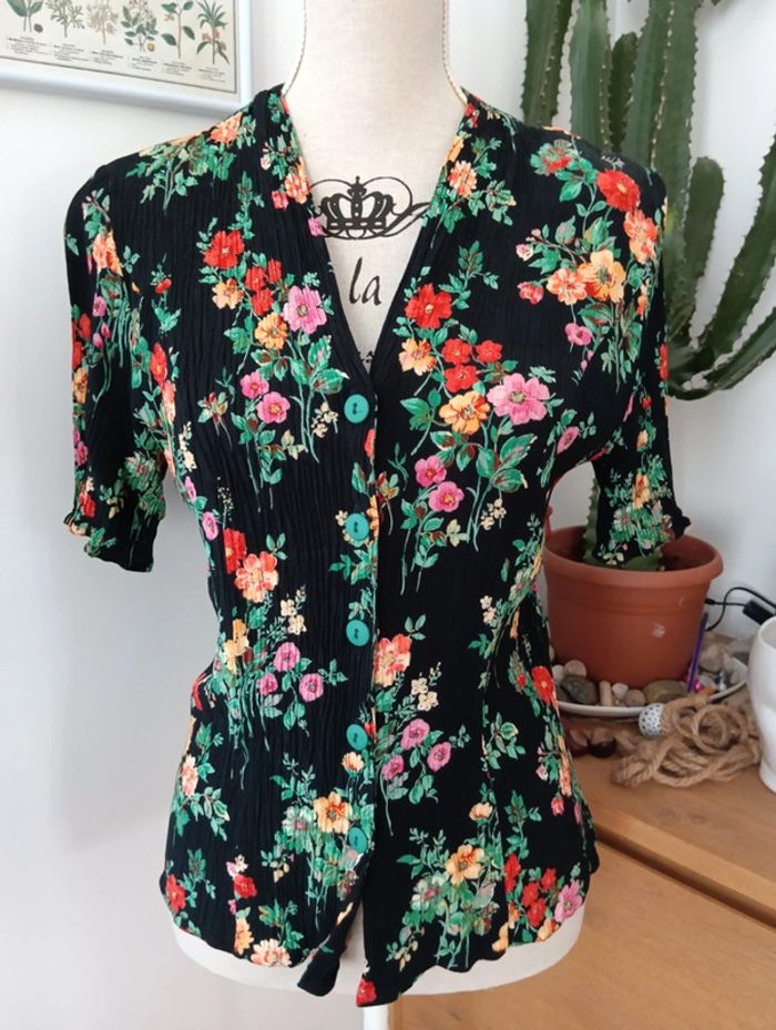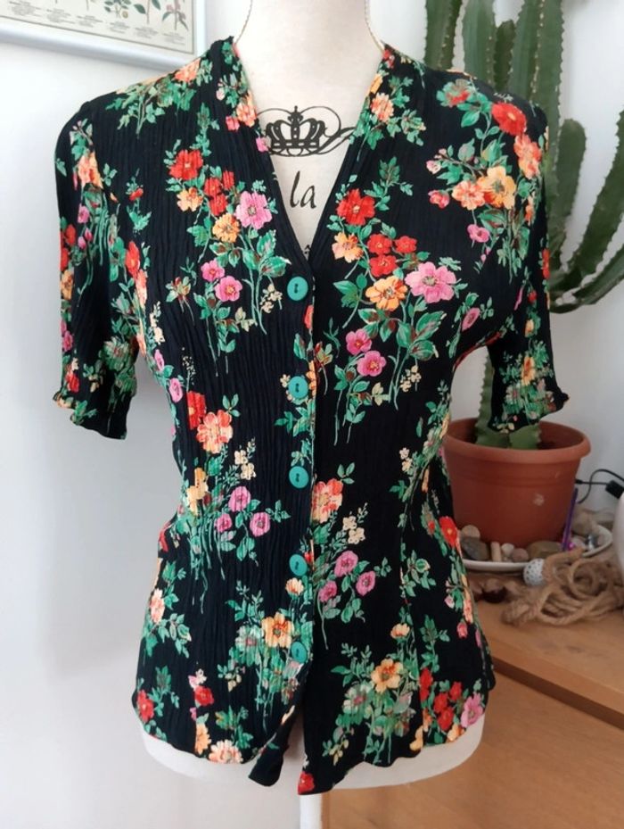 Chemise noire fleurs multicolores effet froissé taille 40 - photo numéro 2