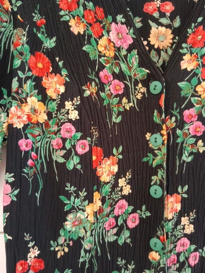 Chemise noire fleurs multicolores effet froissé taille 40 - photo numéro 7