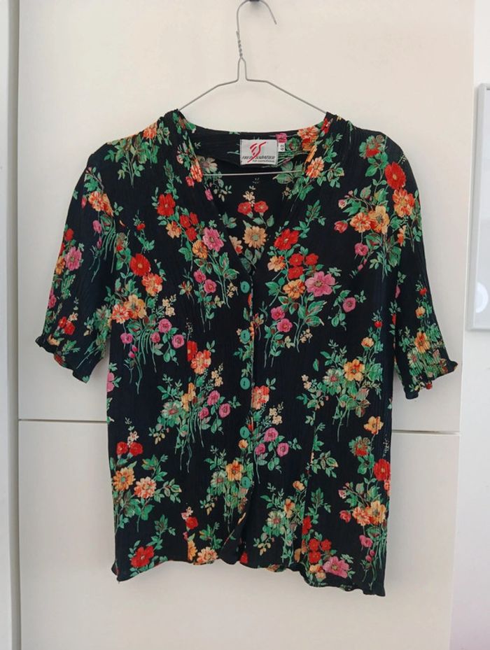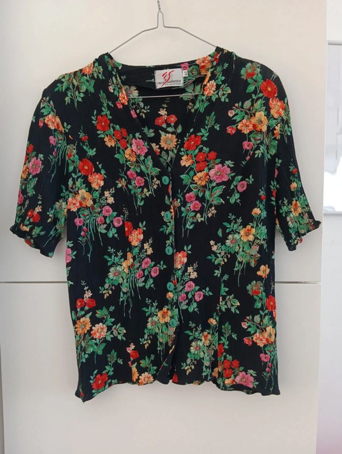 Chemise noire fleurs multicolores effet froissé taille 40 - photo numéro 1