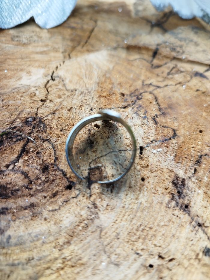 Bague réglable (voir la partie arrière) rose pâle avec une base argentée. Neuve
