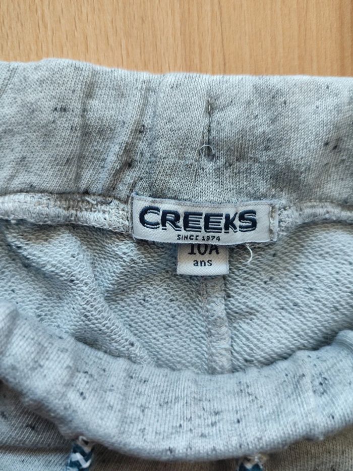 Short gris avec bande sur le côté taille élastique avec lien écriture effacée Creeks taille 10 ans