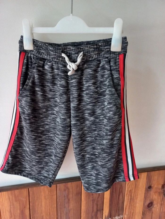 Bermuda gris chiné avec bandes rouges sur le côté #bakeco12ansgarçon