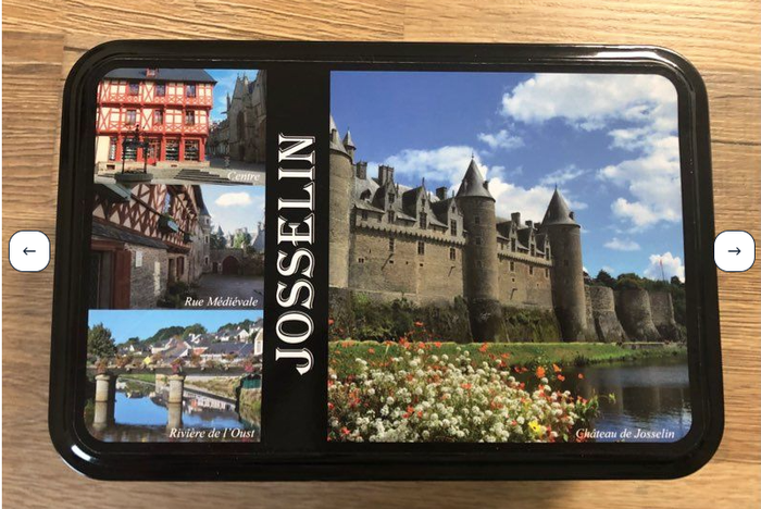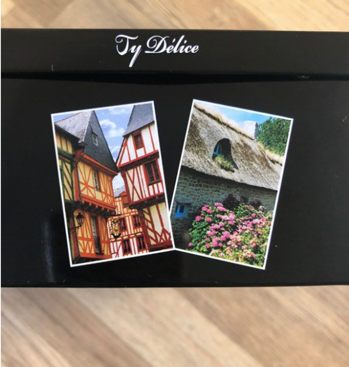 Boîte en métal noire avec photos sur le thème de la Bretagne