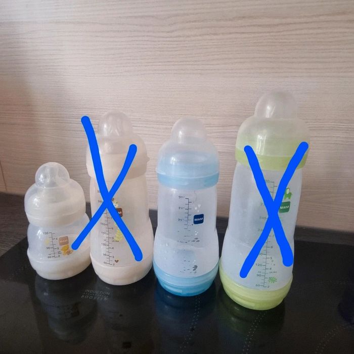 1 x 130 ml 1 x 260 ml Sur le bleu les graduations s'effacent. Hérisson et éléphant plus dispo.