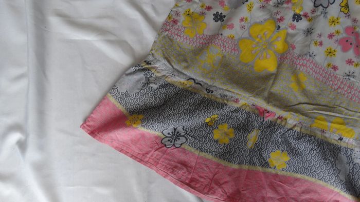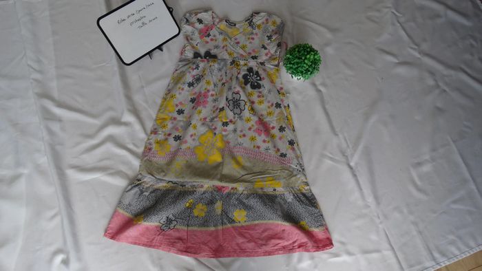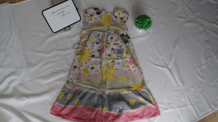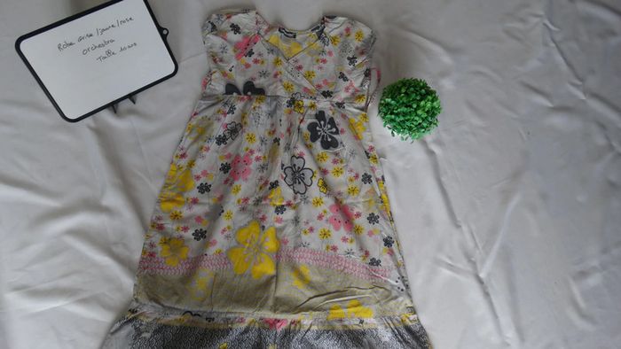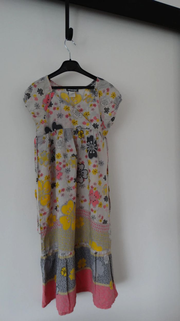 Robe manche courte grise/jaune/rose Motif "fleurs"