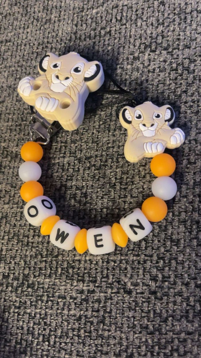 Attache tétine personnalisé en silicone ou en bois au souhait de l’acheteur . Personnalisable au choix de l’acheteur que ce soit la couleur comme le prénom ou le thème . Le fil est doublé pour plus de sécurité tout le long de l’attache tétine. N’hésitez pas à me demander et regarder mon dressing. Une photo vous sera envoyée avant l’expédition pour vous ayez un aperçu du rendu. Tous les produits sont réalisés avec du materiel spécial conçu aux bébés , enfants.