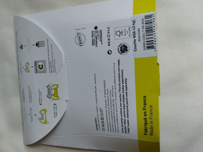Taille M – 6 à 12kg Très bon état. A servi pour un seul enfant Scratch parfaits car toujours refermés lors du lavage Nacelles étanches Lavage en machine 40° (lavage à 60° une fois par mois pour les nettoyer en profondeur) Essorage doux (600-800 tours / minute) Séchage à l’air libre Modèle Atlantide (la couleur est beaucoup plus lumineuse en vrai, la photo ne lui rend pas hommage)