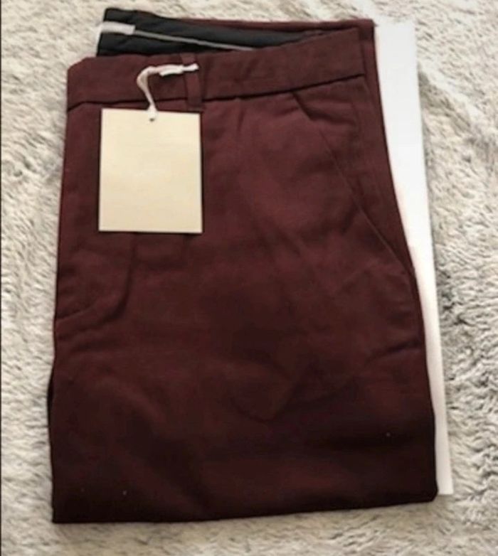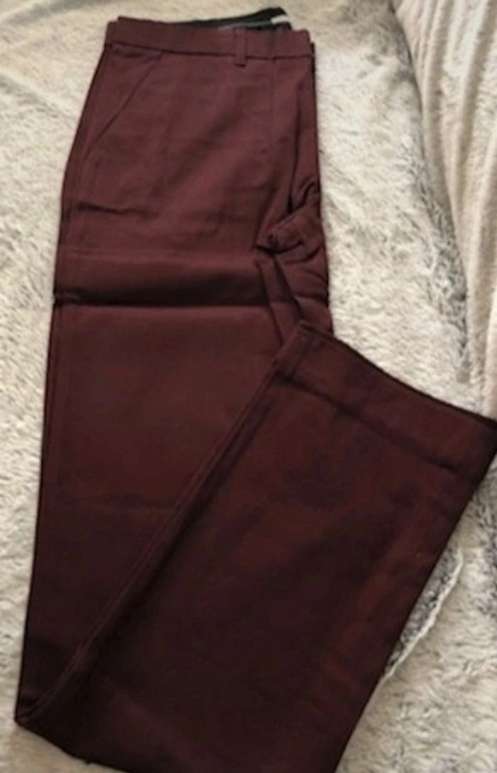 Pantalon slack coupe droite satin de coton stretch. - Coupe droite, bassin plat - Ceinture à passants avec patte prolongée, fermée par un bouton et une agrafe - Braguette zippée - 2 poches biais devant - 2 poches passepoilées boutonnées au dos - 2 pinces dos - Bas ourlés terminés - Entrejambe : 84 cm environ - Largeur bas : 19,5 cm environ COMPOSITION Coton stretch 98% coton, 2% élasthanne Taille : 46 Coloris : prune Prix : 15€ Neuf jamais porté #sisterkayahomme46 Ref : b.ça - 3s