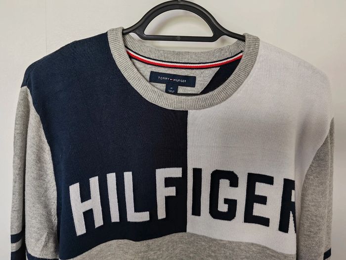 Bonjour, je vends ce pull Tommy Hilfiger, taille M, porté seulement une ou deux fois 100% coton 🚚 Livraison rapide et soigné #pull #pullover #tommyhilfiger #tommy #hilfiger #gris #bleumarine #navy #grey