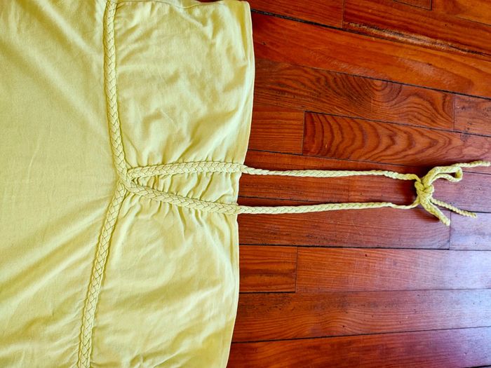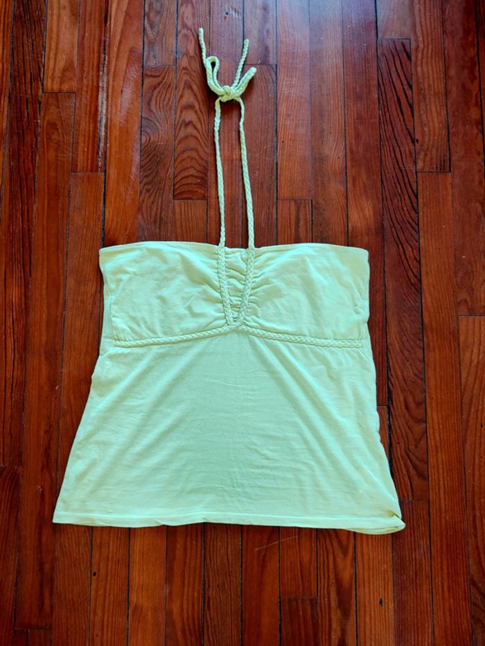 Bonjour, je vends ce petit haut dos nu vert jaune très peu porté.