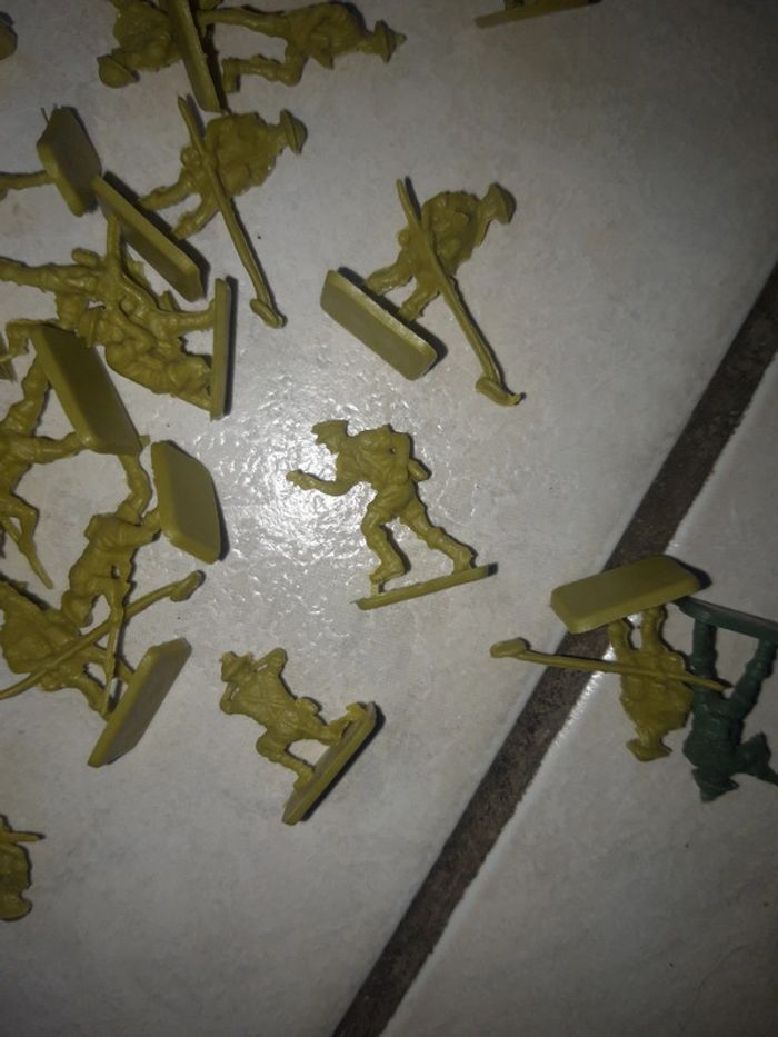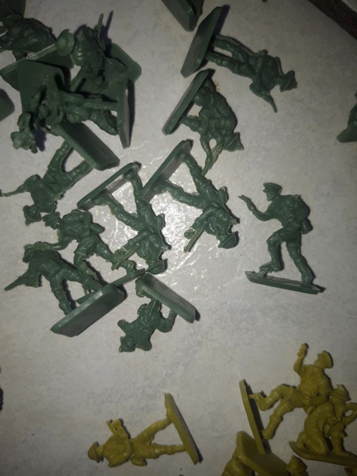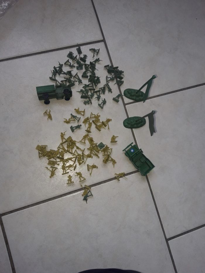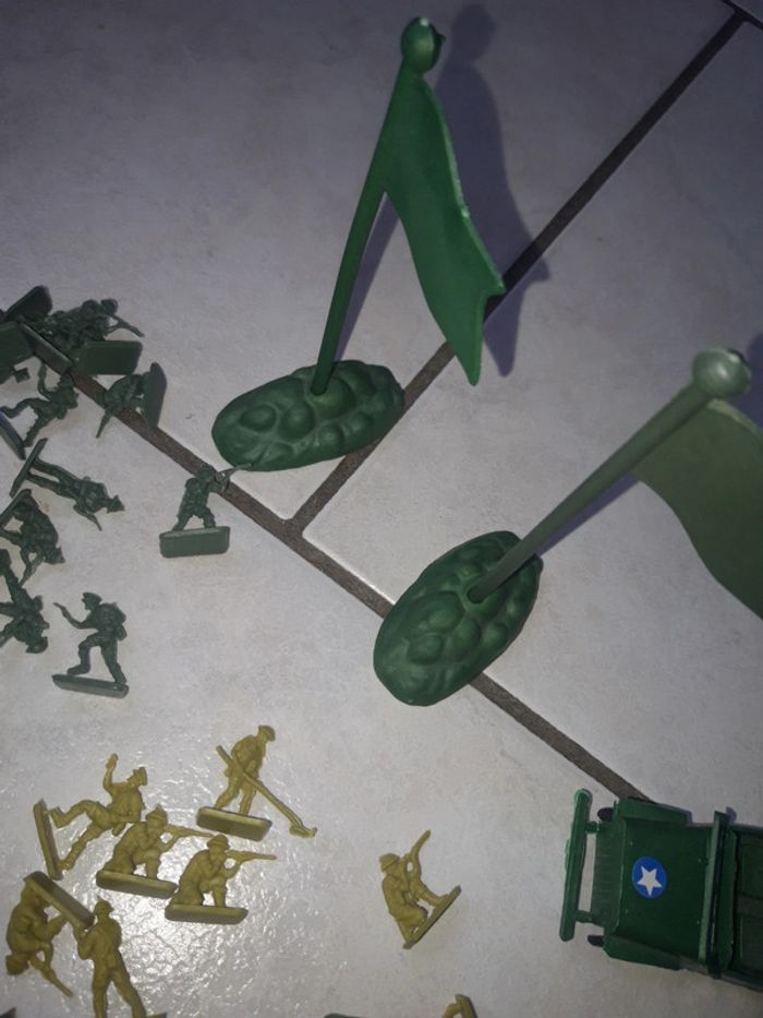 Avec 2 véhicules, 2 drapeaux et 2 troupes. En plastique Les personnages font environ 2 cm.