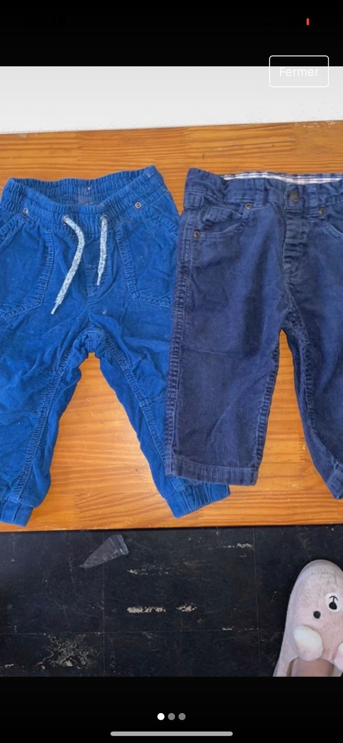Lot de deux pantalon contenant un jeans avec bouton de la marque tex baby et un pantalon jeans jeans avec ficelle marque h&m