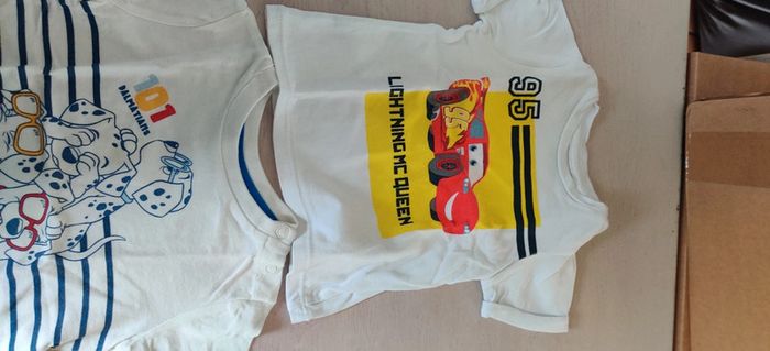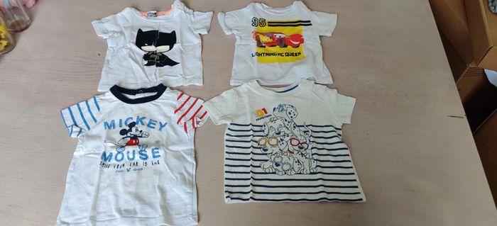 Lot de 4 t-shirts en très bon état. Le t-shirt dalmatien un peu moins blanc que les autres Disney animales. Les trois autres orchestra. T-shirt a l'unité 2€. Me contacter dans ce cas la #alex45430garcon6mois