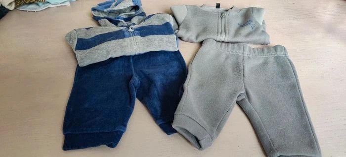 Lot de 2 jogging en bon état en 3 mois. Le bleu de marque kitchoun, le gris Auchan. #alex45430garcon3mois