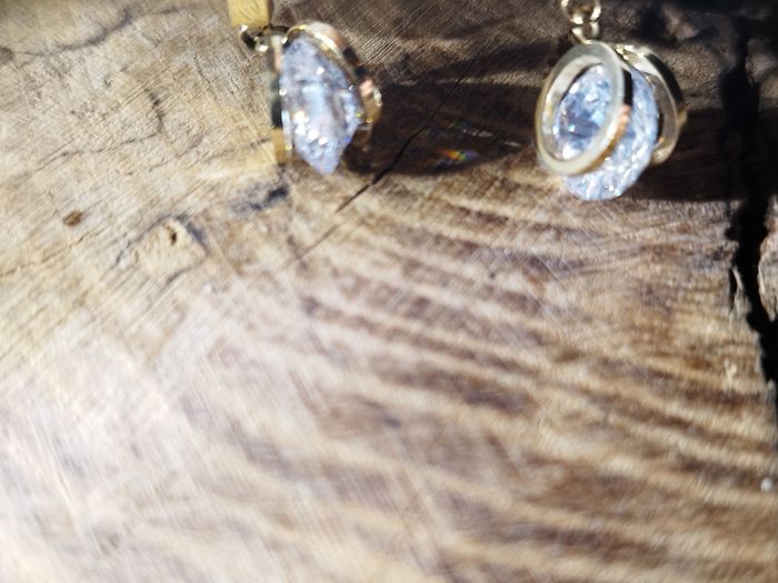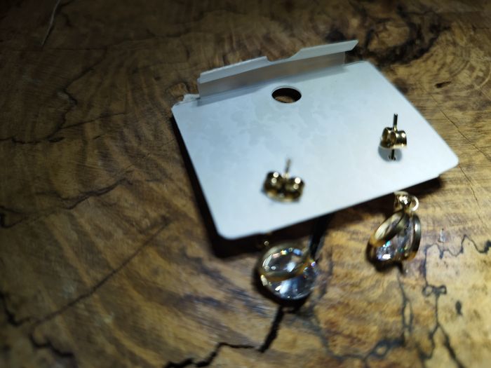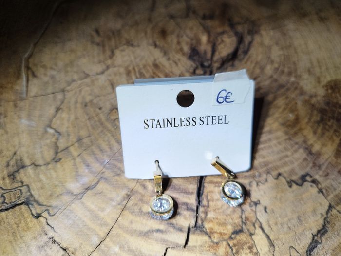 Boucles d'oreilles en acier inoxydable doré avec strass blanc neuves