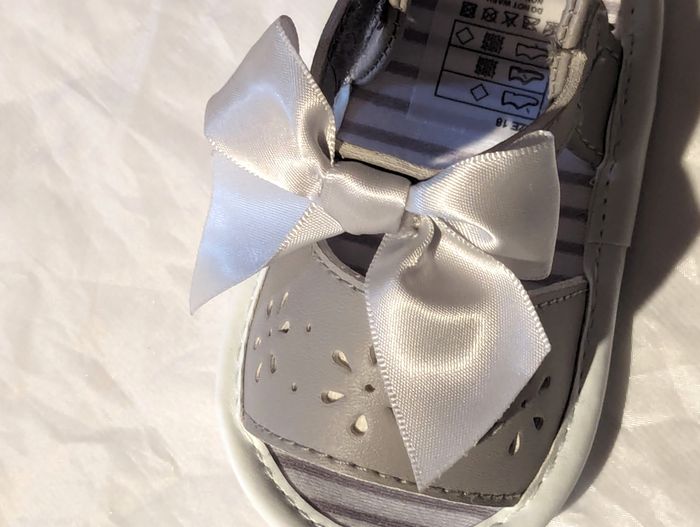 Petites Sandalettes Blanches Grises Flot Ruban Fermeture Scratch Accessoire Petits Enfants Bébés - photo numéro 8