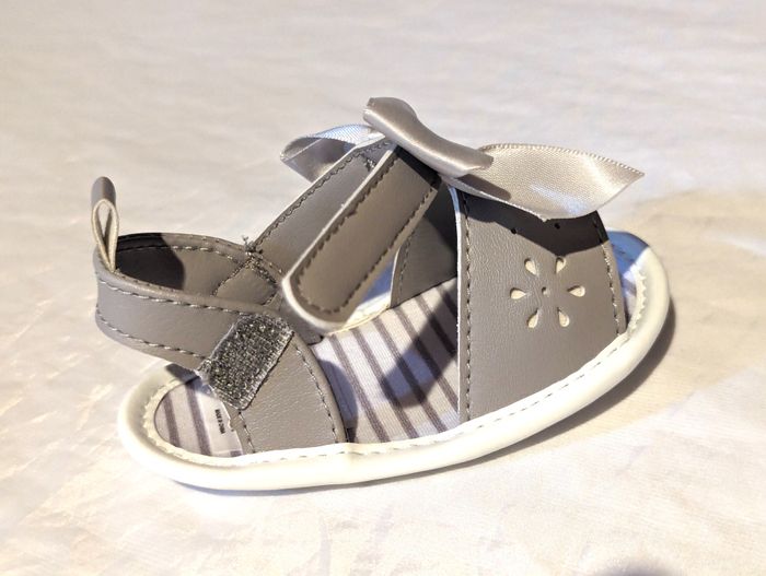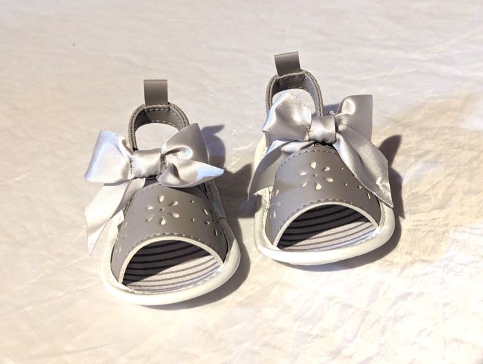Petites Sandalettes Blanches Grises Flot Ruban Fermeture Scratch Accessoire Petits Enfants Bébés - photo numéro 3