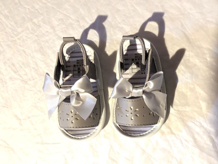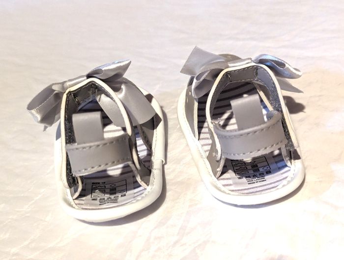 Petites Sandalettes Blanches Grises Flot Ruban Fermeture Scratch Accessoire Petits Enfants Bébés - photo numéro 5