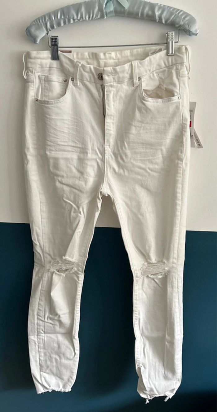 Superbe jean taille haute blanc avec déchirures aux genoux. Neuf, jamais porté, taille H&M 33