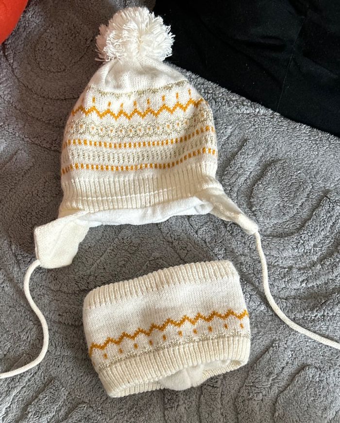 Bonnet péruvien à pompon et tour de cou en très bon état vraiment très peu utilisé. Tient bien chaud et convient aux filles comme aux garçons