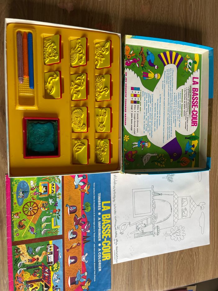 La basse-cour Timbres à imprimer et à colorier Jeu éducatif Fernand Nathan Vous achetez ce que vous voyez en photos 1974 Vintage A partir de 4 ans