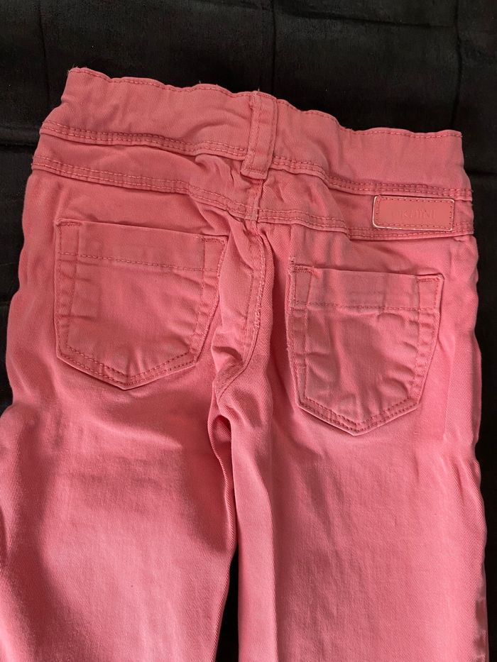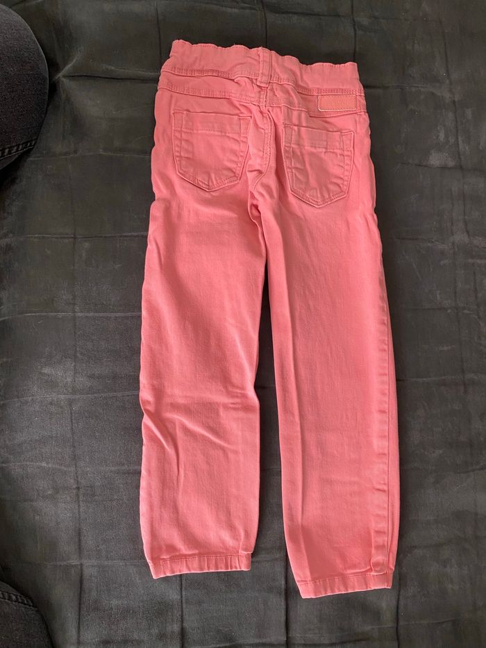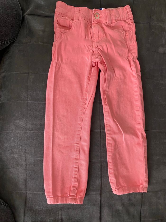 Jean skinny couleur rose, Marque Okaidi, taille 3 ans, état satisfaisant, traces au niveau du genou droit et petite tache jambe gauche comme sur photo, Élastique de réglages à la taille