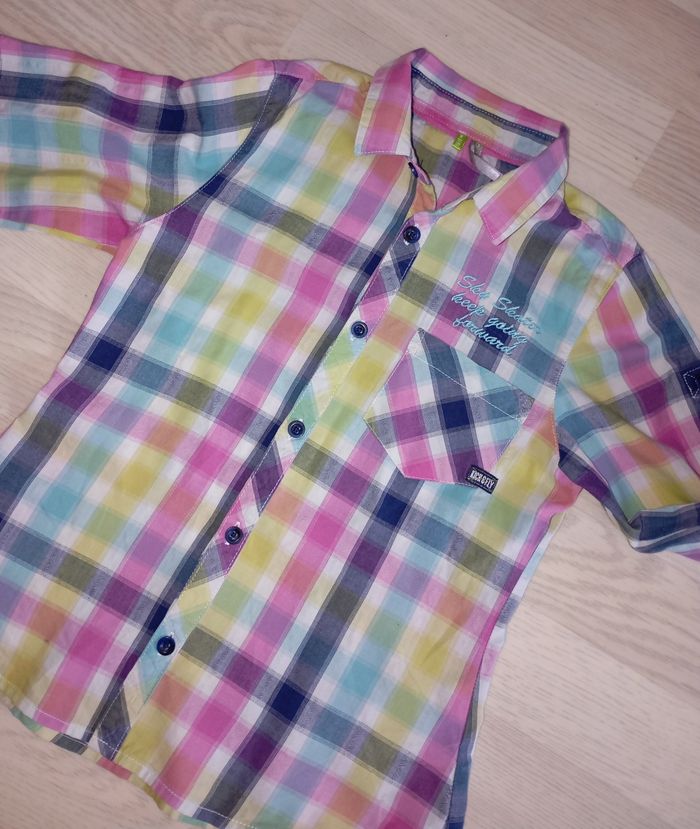 Chemise à carreaux multicolores Marque : Orchestra T. 8 ans Très bon état général