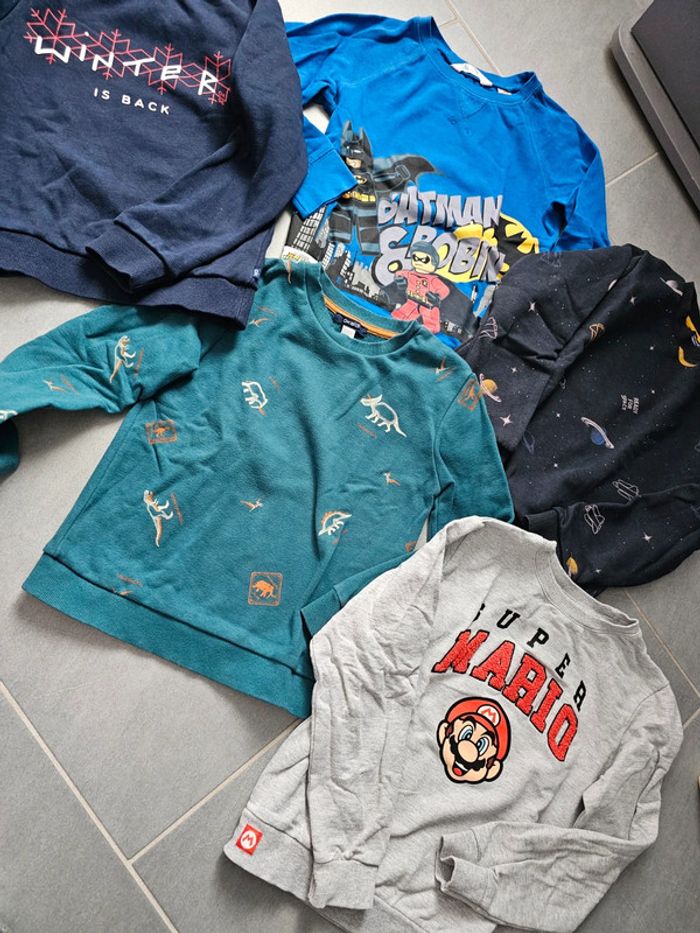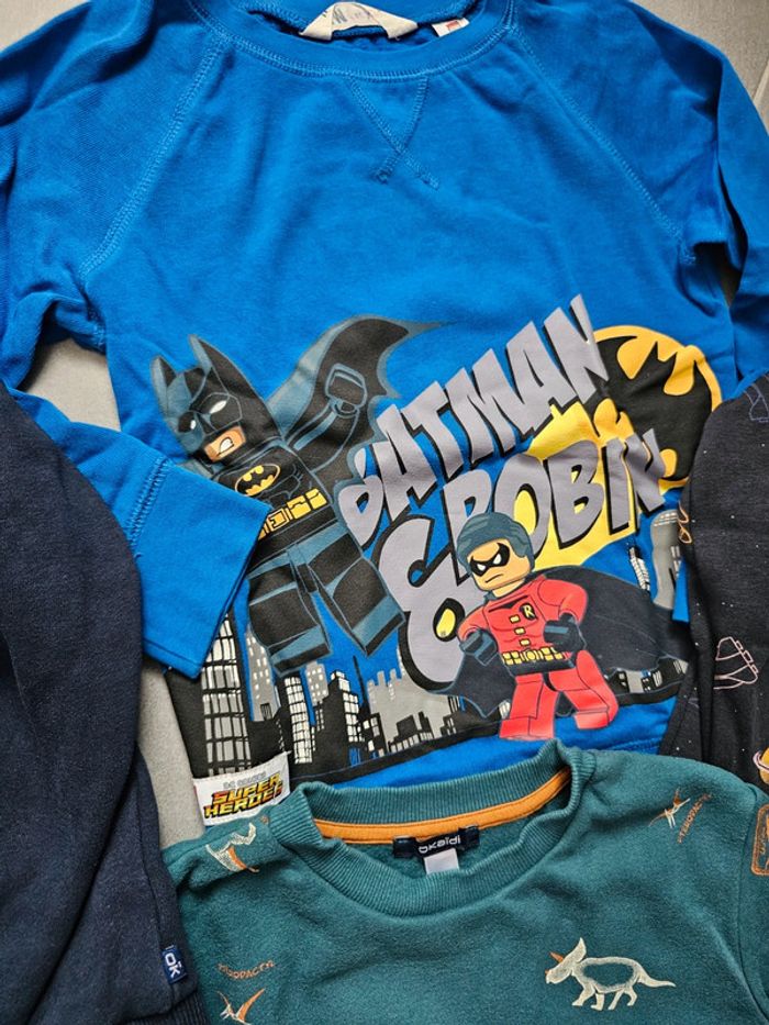 Lot 5 sweat 3 okaidi en 8ans 1 h&m lego batman 6/8ans 1.mario 8ans le tout en tbe
