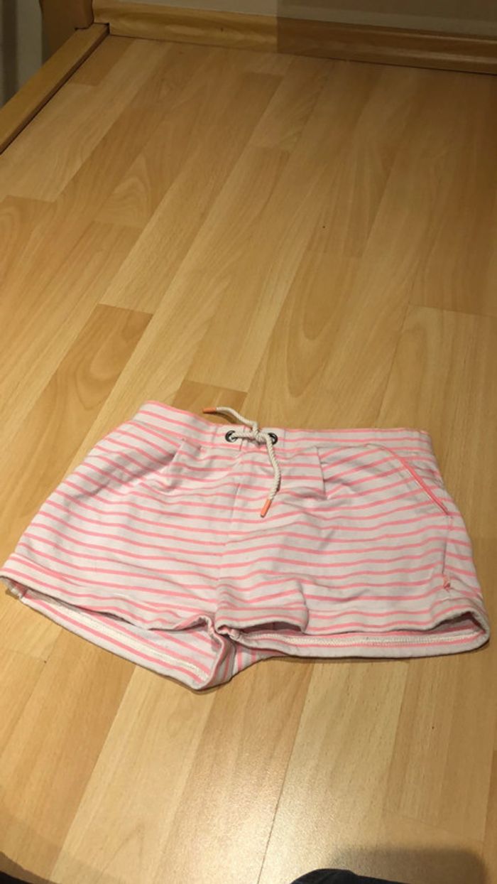 Shorts chino rayé saumon. Élastique à la taille