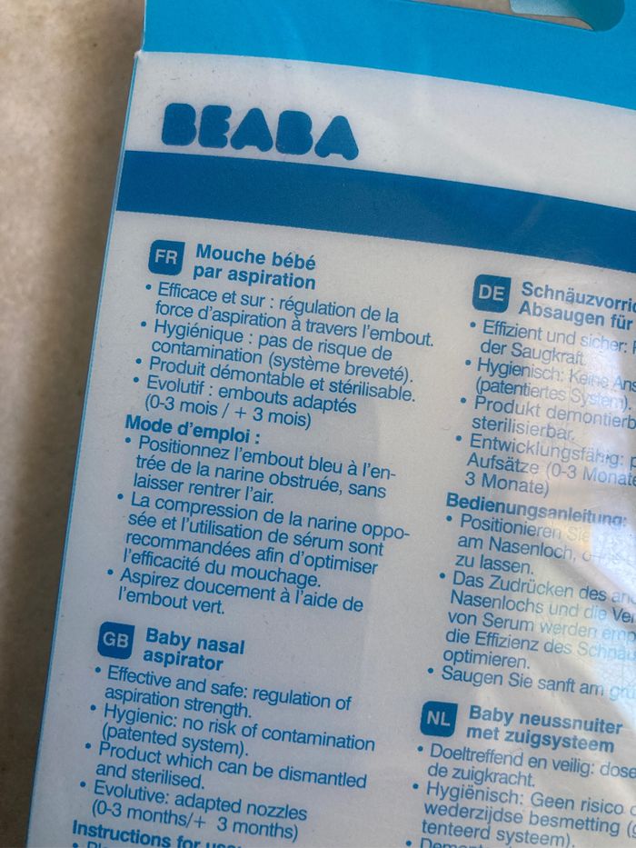 Une paire de ciseau à ongle neuve bébé confort (juste essayés mais je préfère le coupe ongle) Et mouche bébé avec 2 embout Bien servi mais peut entièrement se nettoyer (sauf qu’il reste des traces de calcaire dans le tuyau…)