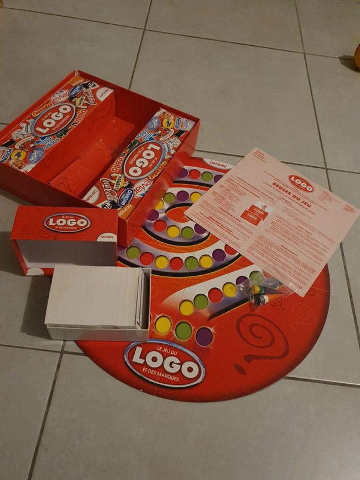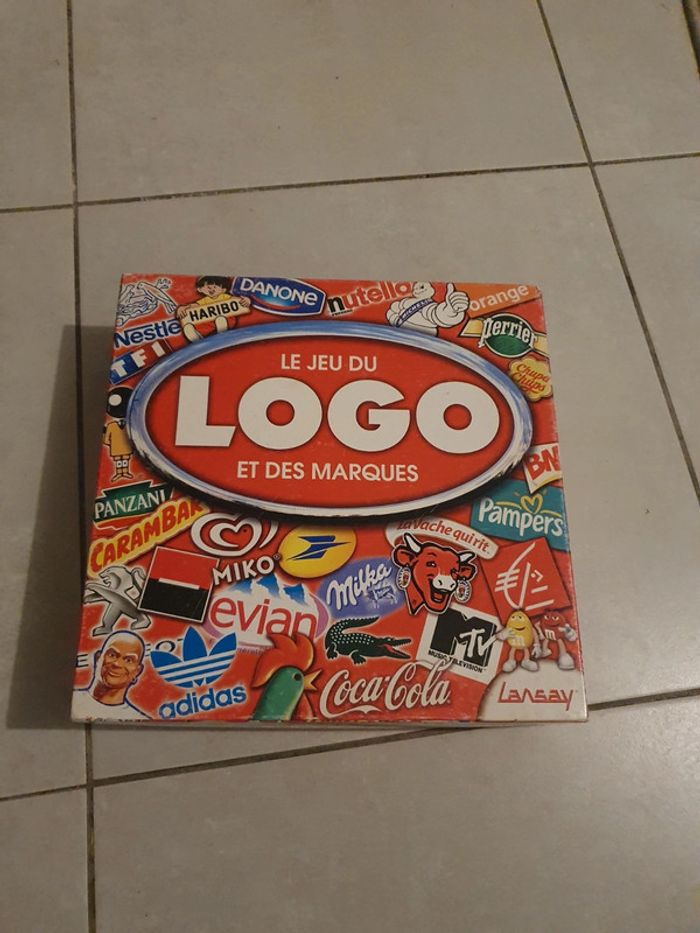 Le jeu du logo. Quelques défauts et tâches (voir photo). Un côté de la boîte cassé (voir photo). #jeu #jeux #jeudesociete #logo #plateau #lansay
