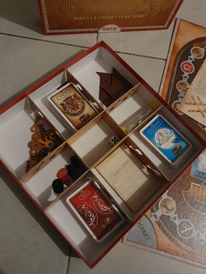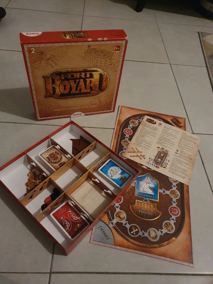 Jeu de société Fort Boyard. Complet et intérieur en très bon état. La boîte en revanche est abîmée (voir photo). J'ai mis bon état sur la boîte parce que la boîte est abîmée mais l'intérieur est en très bon état. #jeu #jeux #jeudesociete #fortboyard #lansay #plateau