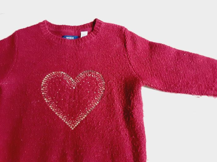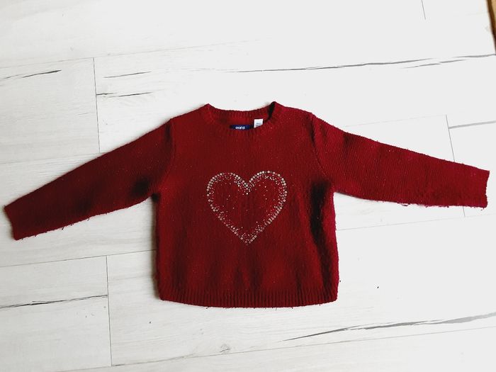 Vêtement fille pull bordeaux cœur Okaidi 3 ans