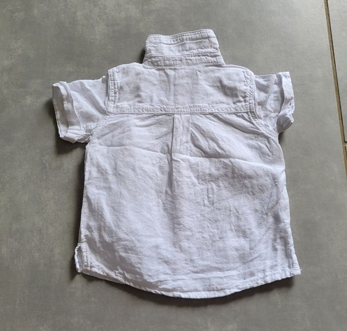 Chemise manches courtes, très élégante, de couleur blanche, de la marque Gemo, taille 18 mois, en très bon état. Matière principale Lin Article lavé pour la vente.