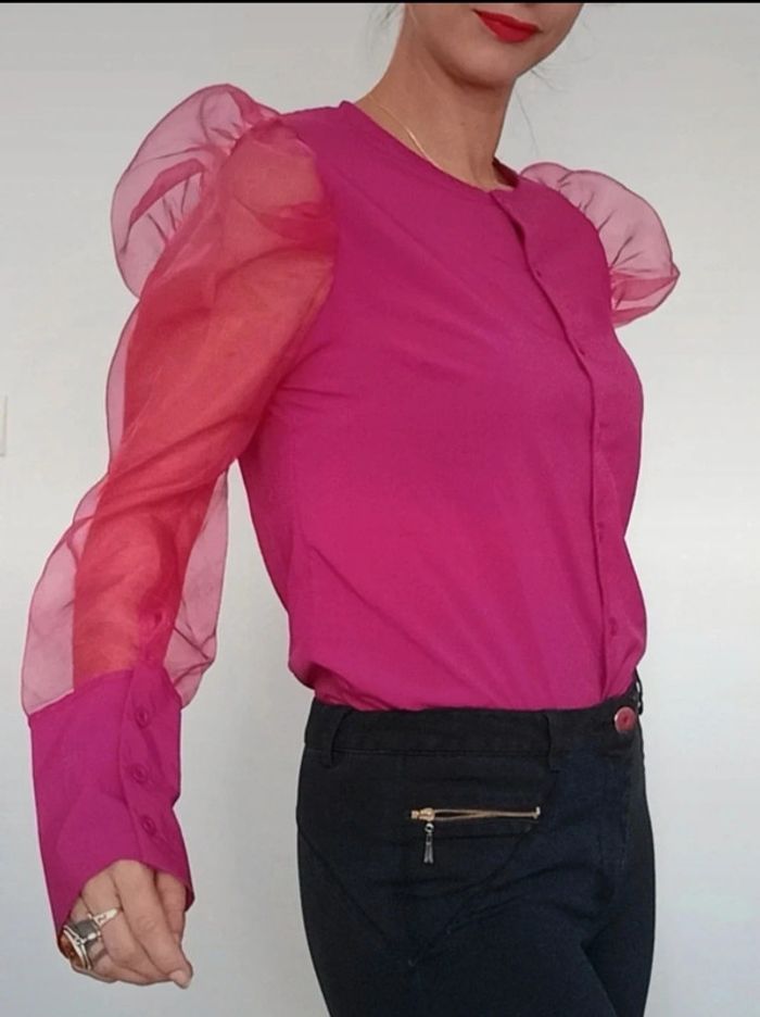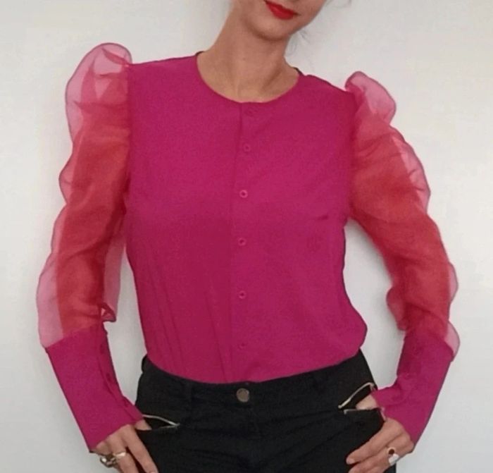📣 Pour un lot, me contacter 😊🌸 -10% pour deux articles achetés -20% pour trois et + 🥰 #poupoupidou40 🫶🫶🫶🫶🫶🫶🫶🫶 Chemisier uni violet/ bordeaux , très chic avec manches longues ballons en tulle, transparentes, boutons aux poignets, neuve idéale #evenement40 #chemisierchic40 #chemisechic40 #chemisesoiree40 #chemisiercocktail #chemisiermanchestulle #chemisierelegant40 #chemiseelegante