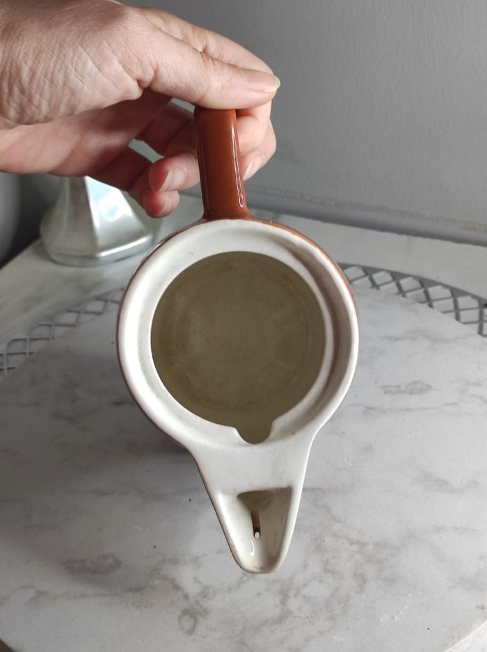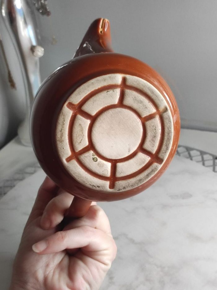 Charmante cafetière vintage en faïence marron datant probablement des années 60/70. Fonctionnelle et décorative, cette bistrotière sera parfaite pour servir et préparer du café ou encore vos infusions, tout en ajoutant une touche rétro à votre table. Couvercle manquant