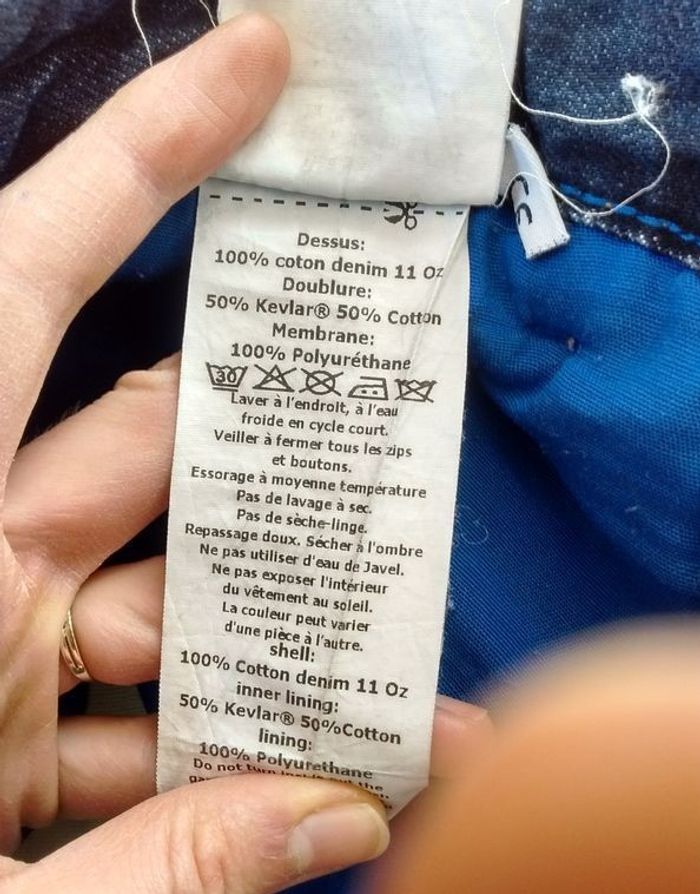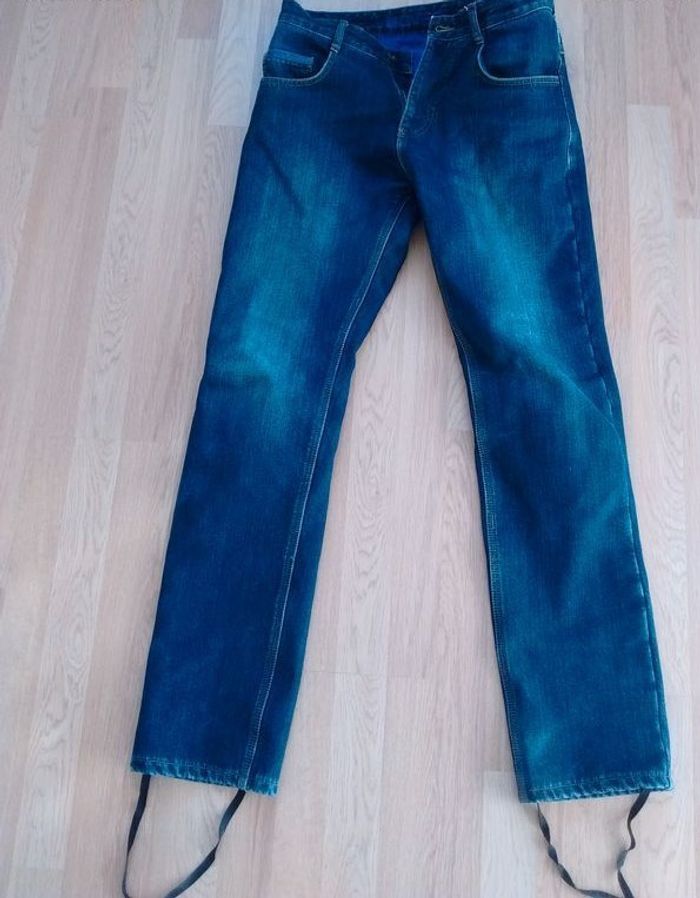 pantalon de moto en jean kevlar, très bon état, renforts aux hanches + genoux marque Overlap Je n'arrive pas à trouver la taille dessus... mais je l'estime à 40-42 comme je mets du 38 et que celui-ci est trop grand pour moi, la raison pour laquelle je le vends J'ai mesuré: -longueur de jambe à partir de la hanche: 110cm -à partir de l'entre-jambes: 85 cm -largeur: 43 cm (donc 86 cm de tour de taille)