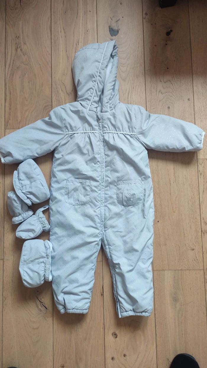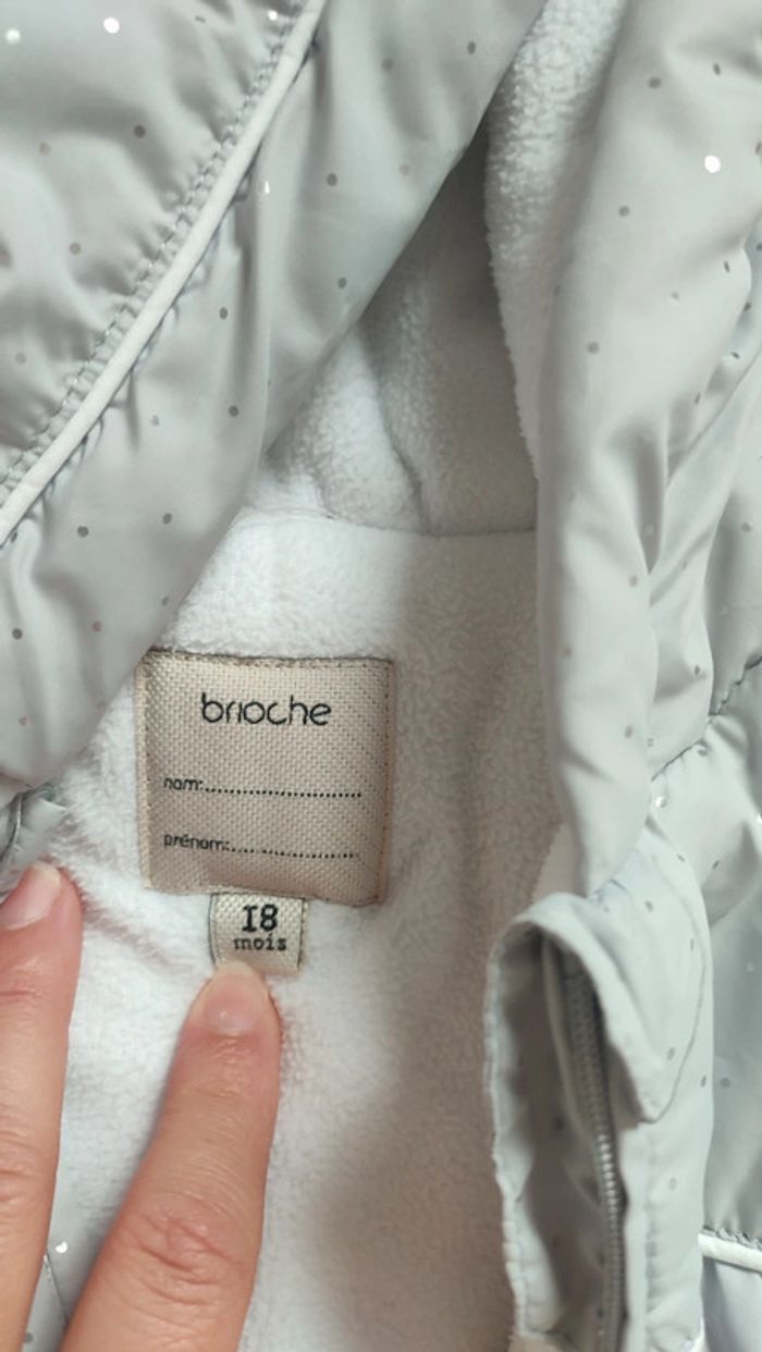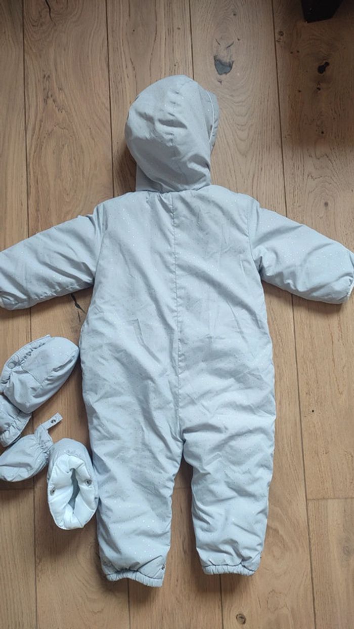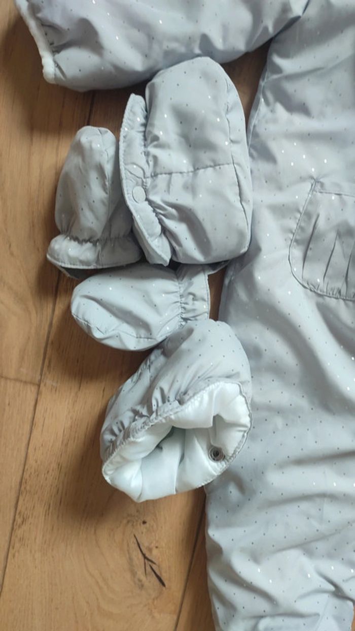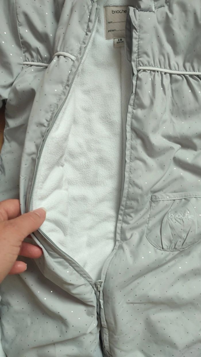 Combinaison aviateur 18 mois Fourré polaire avec pieds moufles et capuche intégrée. Fermeture éclair qui descend jusqu'en bas de la jambe. Grise avec points argenté #liloupinette_18mois
